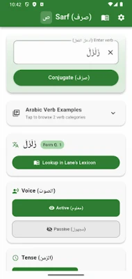 Sarf عربی صرف (verb morphology) میں مہارت حاصل کرنے کے خواہشمند ہر شخص کے لیے ایک بے مثال ساتھی ہے۔ چاہے آپ کلاسیکی عربی کے طالب علم ہوں، قرآنی علوم کے محقق ہوں، یا محض اس حسین زبان سے لگاؤ رکھتے ہوں، Sarf آپ کو عربی افعال کی گہرائیوں کو سمجھنے میں مدد فراہم کرتا ہے۔ اس میں تمام 14 ضمائر کے لیے افعال کی مکمل گردانیں موجود ہیں، جن میں ثلاثی مجرد اور مزید فیہ (باب اول سے باب دہم) کے ساتھ ساتھ رباعی افعال بھی شامل ہیں۔ معلوم اور مجہول دونوں صورتوں کی گردانیں، ان کی متعدی اور لازم نوعیت کی خودکار شناخت کے ساتھ، ماضی، مضارع، امر، مجزوم، منصوب، اور موکد جیسی تمام زمانوں کو بہترین انداز میں پیش کرتی ہیں۔ Sarf کلاسیکی عربی کے مستند اصولوں پر مبنی، صرفی نمونوں کو علمی درستگی کے ساتھ پیش کرتا ہے۔