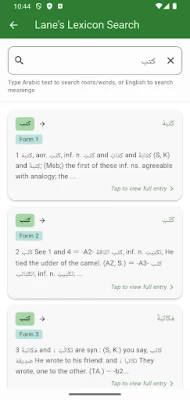 علم صرف کے ساتھ ساتھ، Sarf آپ کو عربی نحو (syntax) کی دنیا میں بھی رہنمائی فراہم کرتا ہے۔ اس میں علامہ ابن ہشام الانصاری کی مشہور کتاب "شرح قطر الندى وبل الصدى" کا مکمل متن شامل ہے، جو عربی گرامر کی بنیادوں کو سمجھنے کے لیے ایک لازمی ماخذ ہے۔ یہ کتاب چار مختلف زبانوں - عربی، انگریزی، اردو اور فارسی - میں دستیاب ہے، جس سے وسیع پیمانے پر سیکھنے والوں کو فائدہ ہوتا ہے۔ بڑی اسکرینوں پر دو طرفہ منظر (split view) کا آپشن ترجمے کے مطالعے کے لیے مثالی ہے۔ مزید برآں، Sarf میں ایڈورڈ ولیم لین کا معروف عربی-انگریزی لغت بھی مربوط ہے، جو آپ کو بنیادی حروف یا مشتق الفاظ کے ذریعے جامع معانی، لسانی ماخذ اور کلاسیکی استعمال تک رسائی دیتا ہے۔ افعال کے ذہین تجزیے کی خصوصیت، جیسے باب کی خودکار شناخت اور اسم فاعل و مفعول سے اصل مادے کا استخراج، آپ کی سمجھ کو مزید گہرا کرتی ہے۔